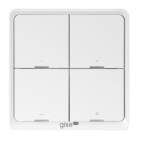 Przycisk 4x Gise SMART to wielofunkcyjne urządzenie do sterowania automatyką domową. Wyposażony w cztery dotykowe przyciski, pozwala na wygodne zarządzanie różnymi urządzeniami w systemie Home Assistant.